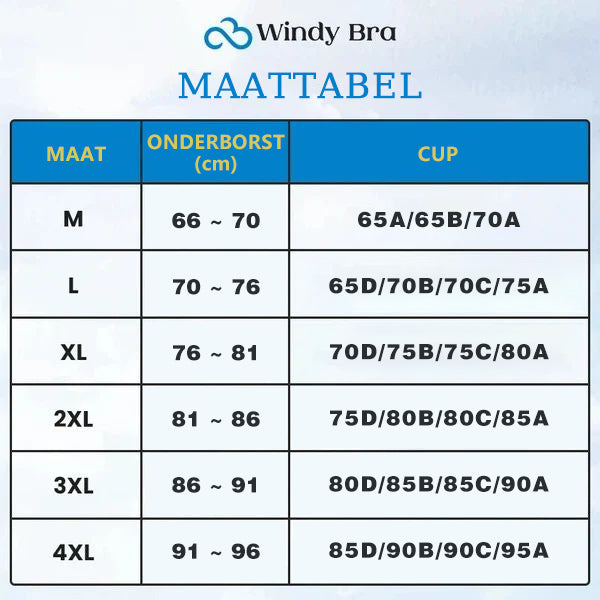 WindyBra ist in verschiedenen Größen erhältlich, sodass jeder einen bequemen und sicheren Sitz hat.