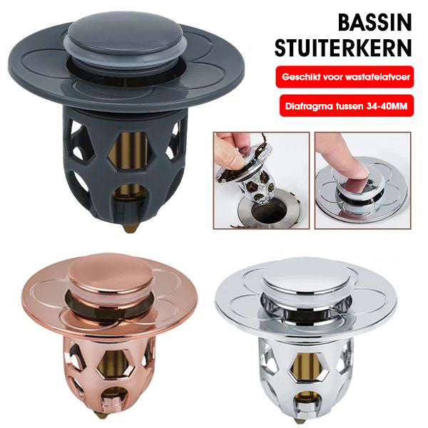 【Verstopfungssicherer Innenkorb】 Im Gegensatz zum normalen Abflussstopfen mit Druckknopf verfügt der verbesserte Abflussstopfen für Waschbecken über einen verstopfungsfreien Korb im Inneren, der Haare und Schmutz auffängt und verhindert, dass der Abfluss verstopft wird.