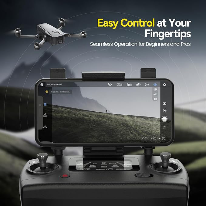 - Considerate Controller: The control range of 2.4GHz transmitter reaches to 3000 feet high range; battery level and GPS signal shown on the LED screen; a button to turn on or off the drone light is added; right hand throttle mode is available for left-hander. Remember to remove the scratch-proof film from the controller and the camera before use.